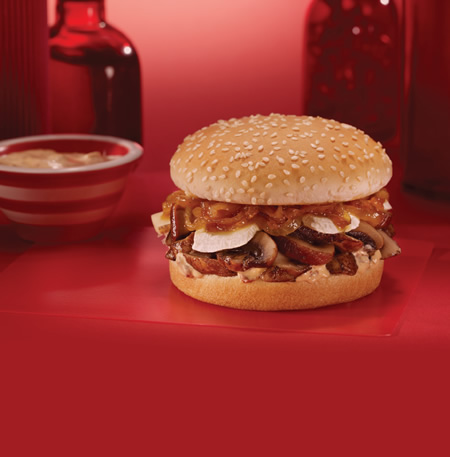 - Calienta el pan de hamburguesas Bimbo, rellénalo con hongos portobello, rebanadas de queso brie, cebollitas caramelizadas y unta la mezcla de mayonesa con chipotles.