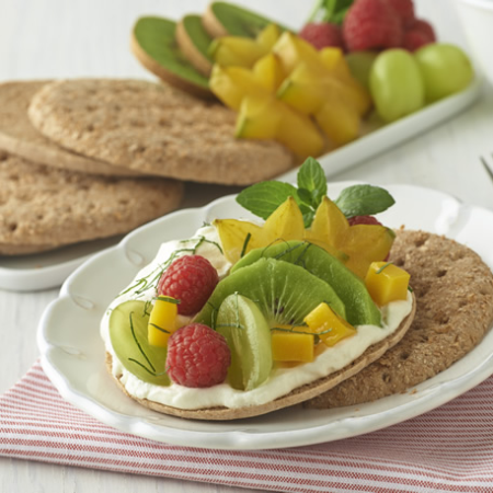 - Agrega un poco de crema pastelera con limón (opcional) sobre los Thins Trigos Dorados.